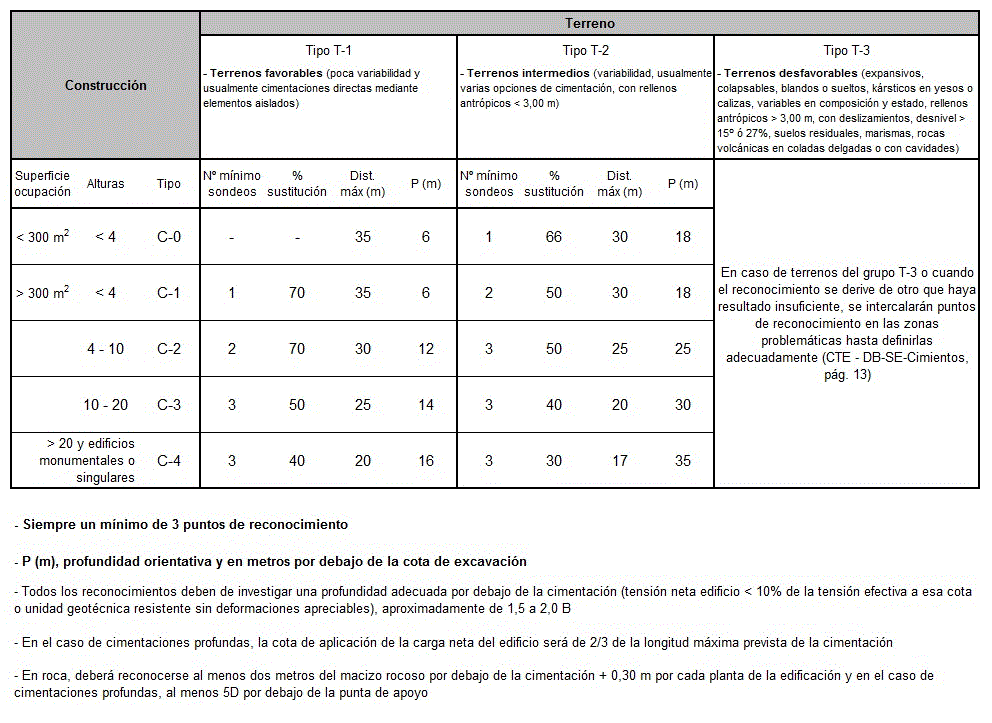 Para el caso de edificaciones de nueva planta y siguiendo las especificaciones del Código Técnico de la Edificación (CTE-DB-SE Cimientos).
